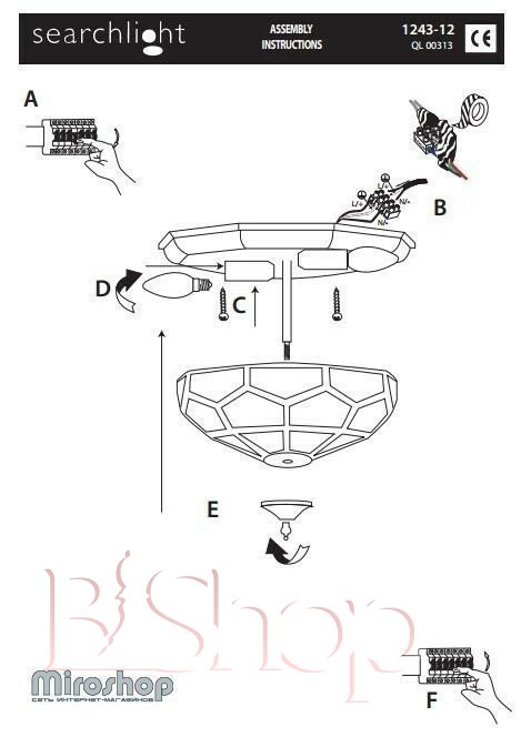 Стельовий світильник Searchlight 1243-12 Flush (21635)