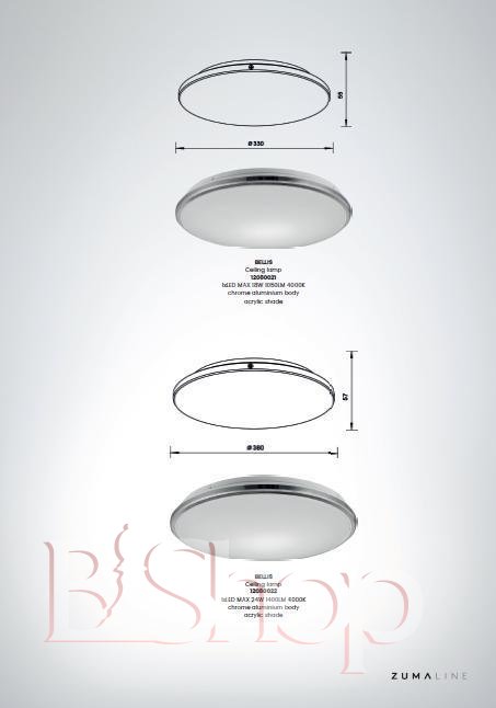 Кількість ламп: 1. Тип цоколя: LED. Висота (див): 5.5. Потужність лампи (Вт): 18. Діаметр (див): 33.