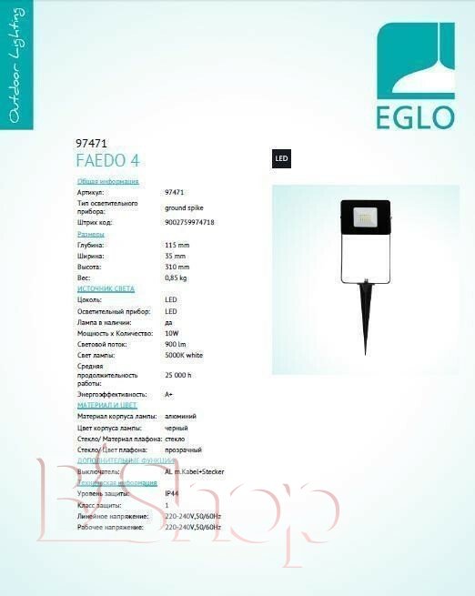 - Загальна потужність ламп (Вт): 10.0 Вт
