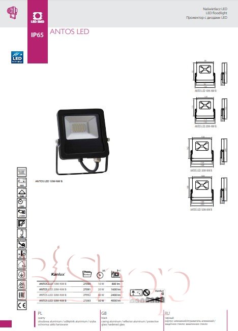 Прожектор Kanlux ANTOS LED 20W-NW B (27091)