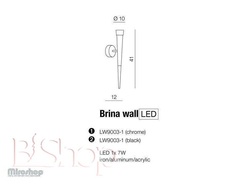 Количество ламп: 1. Тип цоколя: LED. Высота (см): 41. Ширина (см): 10. Мощность лампы (Вт): 7. Длина (см): 12.