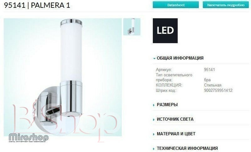 Бра для ванной Eglo 95141 Palmera 1 (84417)