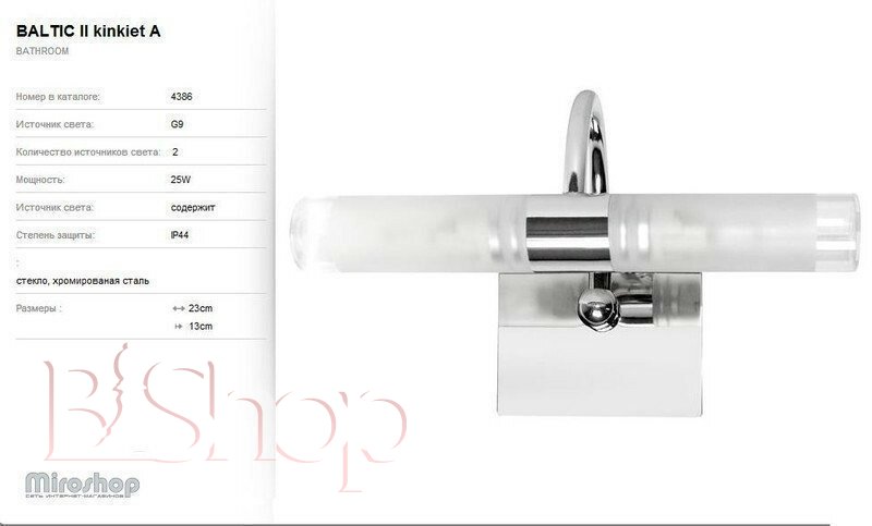 - Категория товара: Светильники для ванной