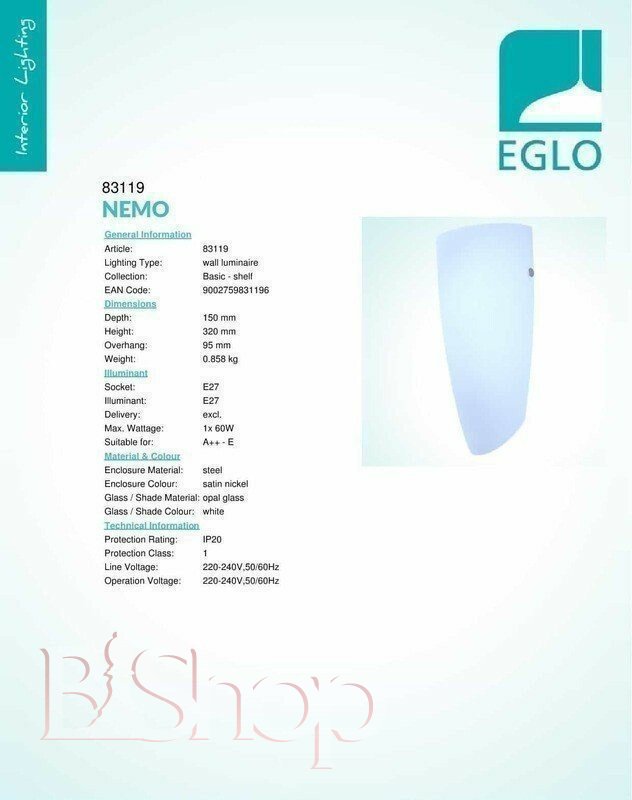 Количество ламп: 1. Тип цоколя: E27. Высота (см): 32. Ширина (см): 15. Глубина (см): 9.5. Мощность лампы (Вт): 100.