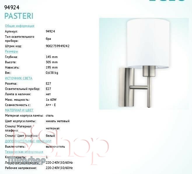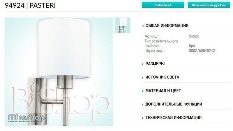 Бра Eglo 94924 Pasteri (83169)