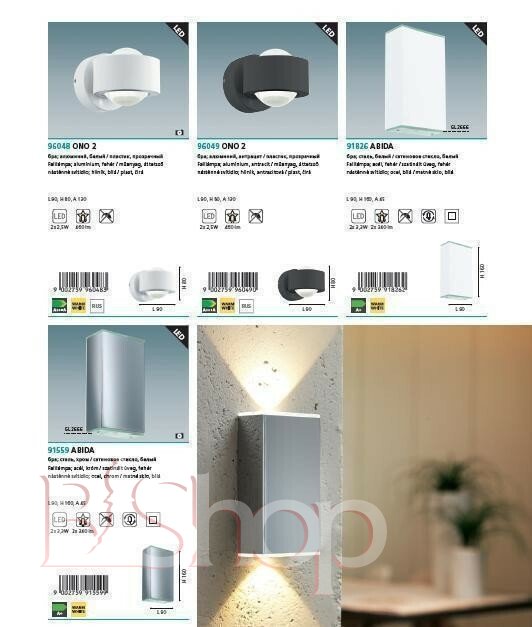 Количество ламп: 2. Тип цоколя: LED. Высота (см): 8. Ширина (см): 9. Глубина (см): 13. Мощность лампы (Вт): 2.5.
