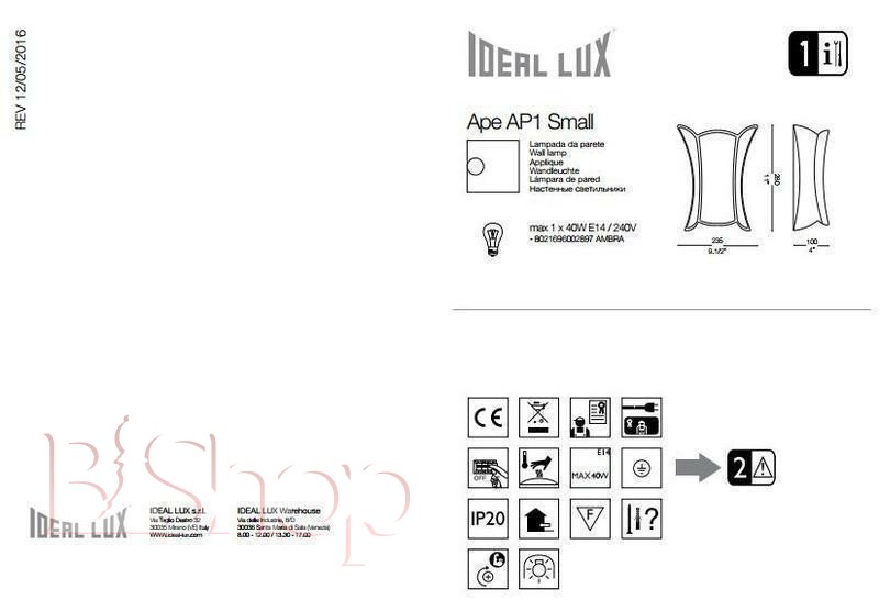Бра Ideal Lux APE AP1 SMALL (002897) (41739)