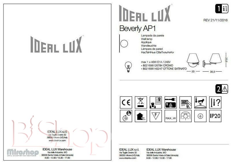 Бра Ideal Lux BEVERLY AP1 OTTONE SATINATO (140247) (96719)
