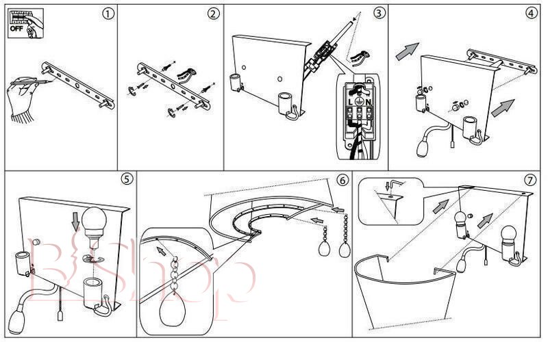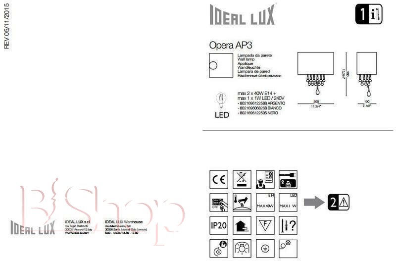 Количество ламп: 2. Тип цоколя: E14. Высота (см): 35. Глубина (см): 19. Мощность лампы (Вт): 40. Длина (см): 30.