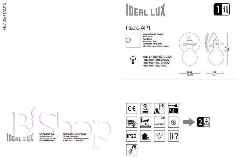 Бра Ideal Lux RADIO AP1 CROMO (119427) (87811)