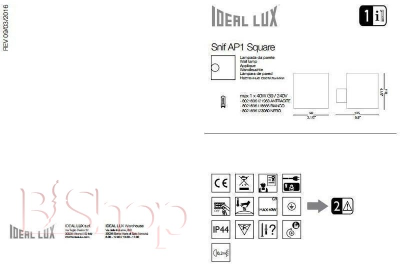 Бра Ideal Lux SNIF AP1 SQUARE NERO (123080)