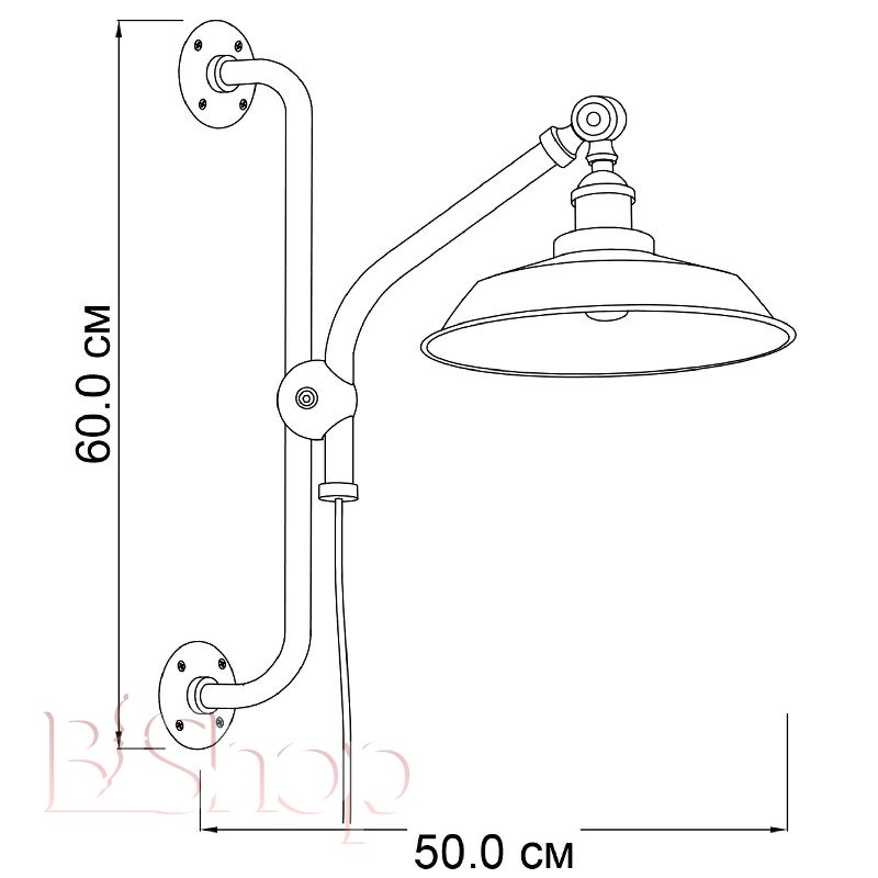 Количество ламп: 1. Тип цоколя: E27. Высота (см): 60. Ширина (см): 50. Мощность лампы (Вт): 60. Диаметр (см): 26.