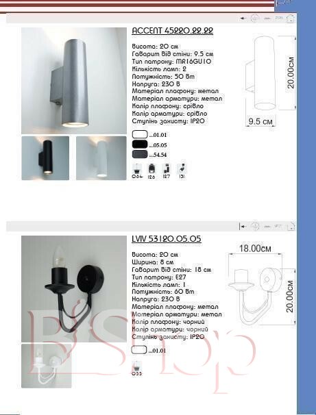 Количество ламп: 1. Тип цоколя: E27. Высота (см): 20. Ширина (см): 8. Глубина (см): 18. Мощность лампы (Вт): 60.
