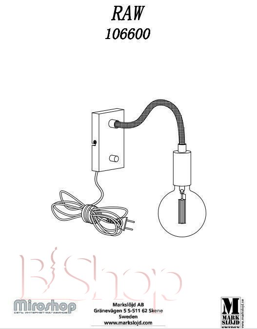 Количество ламп: 1. Тип цоколя: E27. Высота (см): 33. Ширина (см): 9. Мощность лампы (Вт): 60. Длина (см): 24.