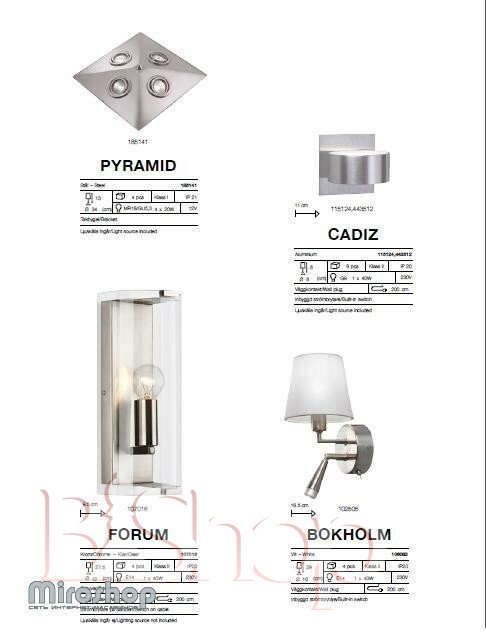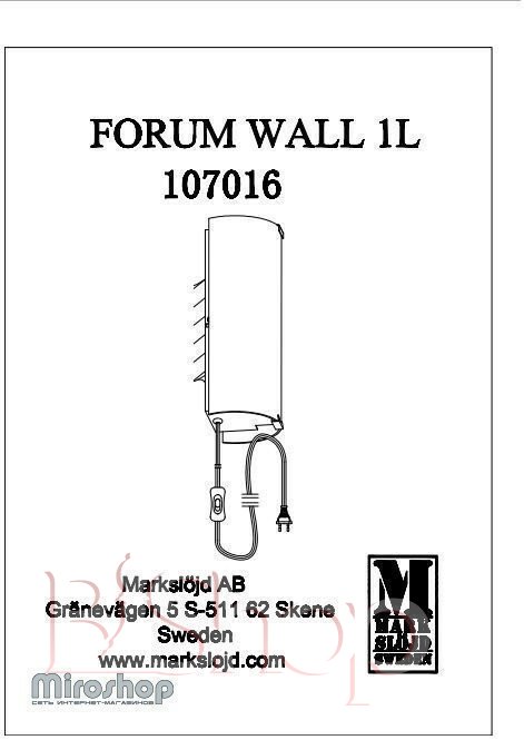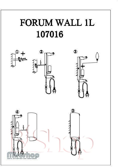 Количество ламп: 1. Тип цоколя: E14. Высота (см): 27. Ширина (см): 12. Глубина (см): 9. Мощность лампы (Вт): 40.