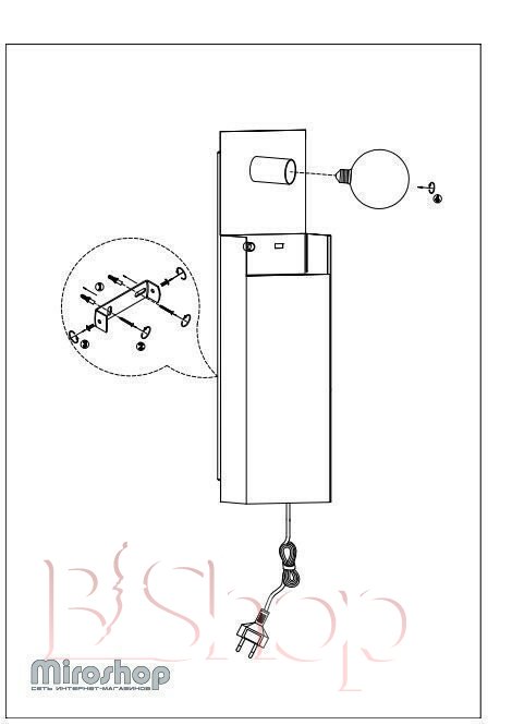 Количество ламп: 1. Тип цоколя: E27. Высота (см): 62.5. Ширина (см): 13. Глубина (см): 16. Мощность лампы (Вт): 60.