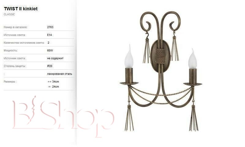 Количество ламп: 2. Тип цоколя: E14. Ширина (см): 34. Глубина (см): 24. Мощность лампы (Вт): 60.