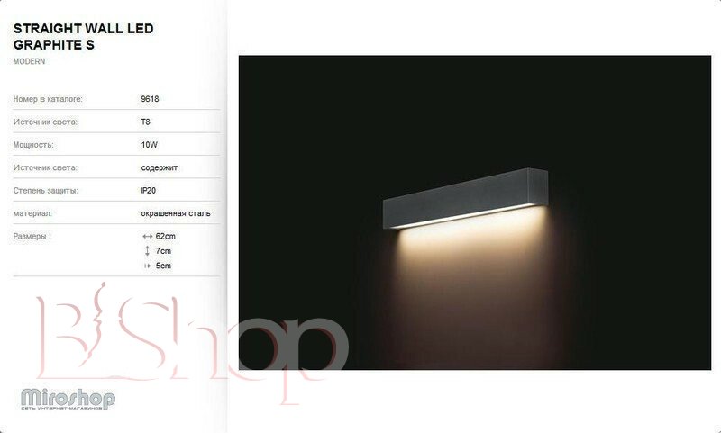 Бра Nowodvorski 9618 STRAIGHT WALL LED Graphite S (93104)