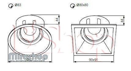 Количество ламп: 1. Диаметр (см): 9.2. Размер врезного отверстия (см): 8.3.