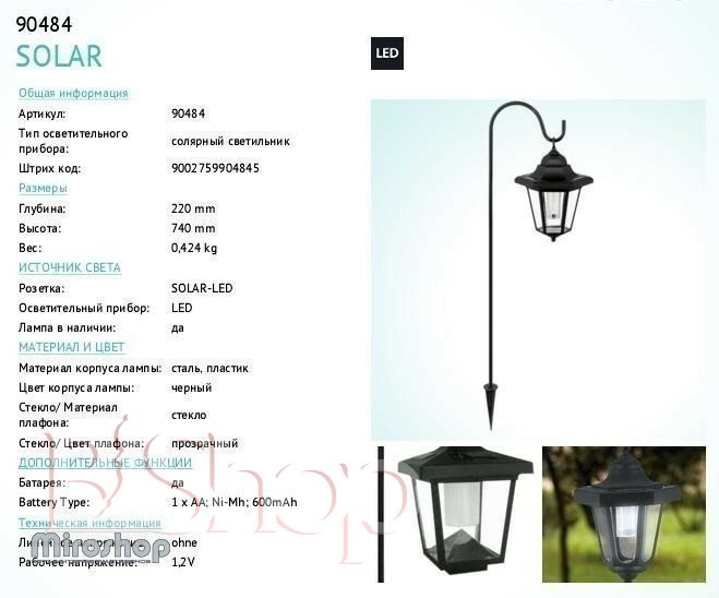 Количество ламп: 1. Тип цоколя: LED. Высота (см): 74. Мощность лампы (Вт): 0.07. Длина (см): 22.