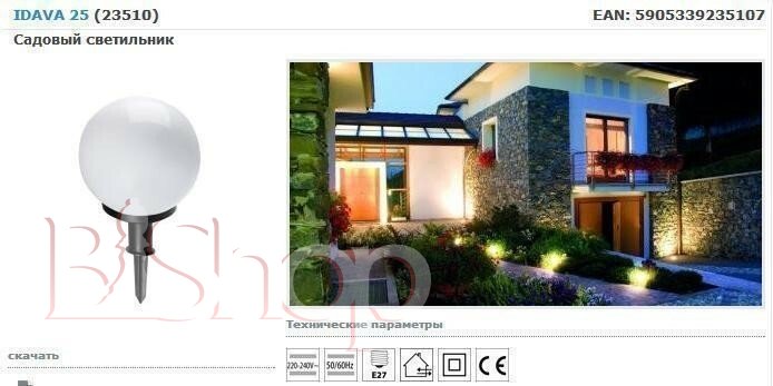 - Мощность лампы (Вт): 25 Вт