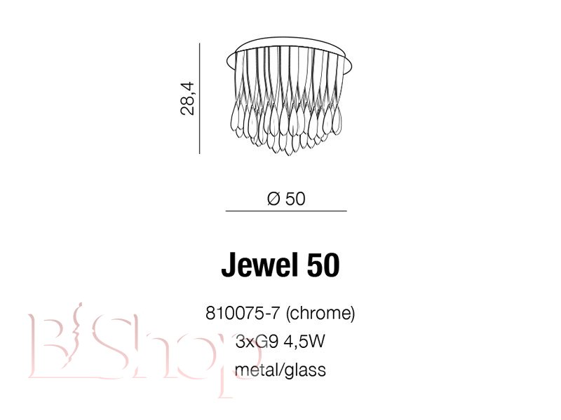 Количество ламп: 7. Тип цоколя: G9. Высота (см): 28.4. Мощность лампы (Вт): 40. Диаметр (см): 50.