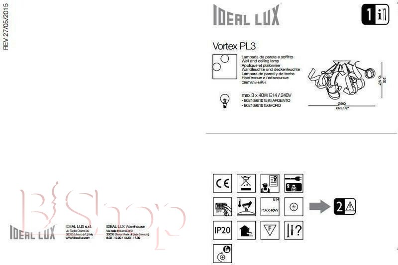 Люстра Ideal Lux VORTEX PL3 ARGENTO (101576) (81398)