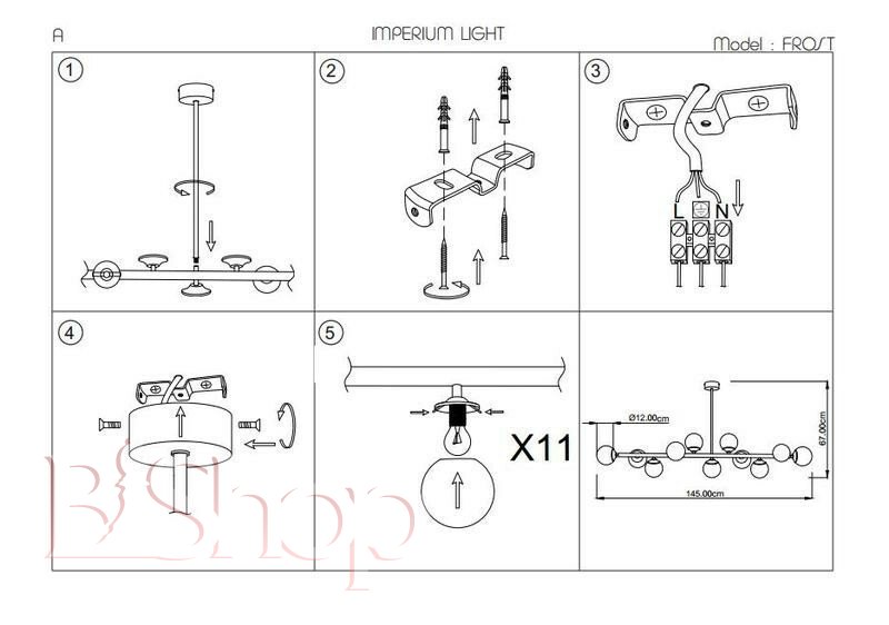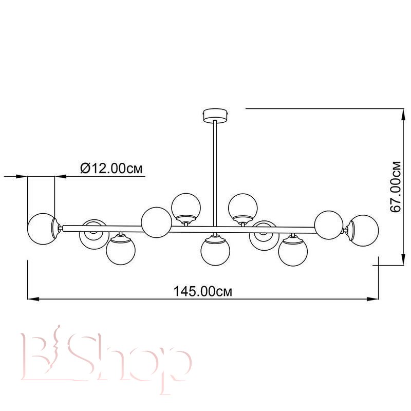 Количество ламп: 11. Тип цоколя: E14. Высота (см): 67. Мощность лампы (Вт): 40. Длина (см): 145.