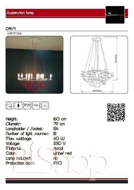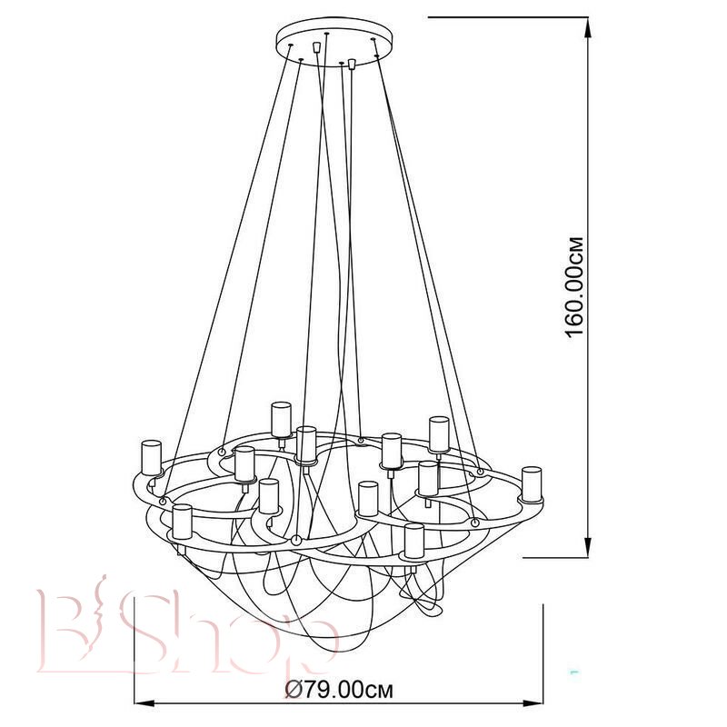 Количество ламп: 12. Тип цоколя: E14. Высота (см): 160. Мощность лампы (Вт): 60. Диаметр (см): 79.