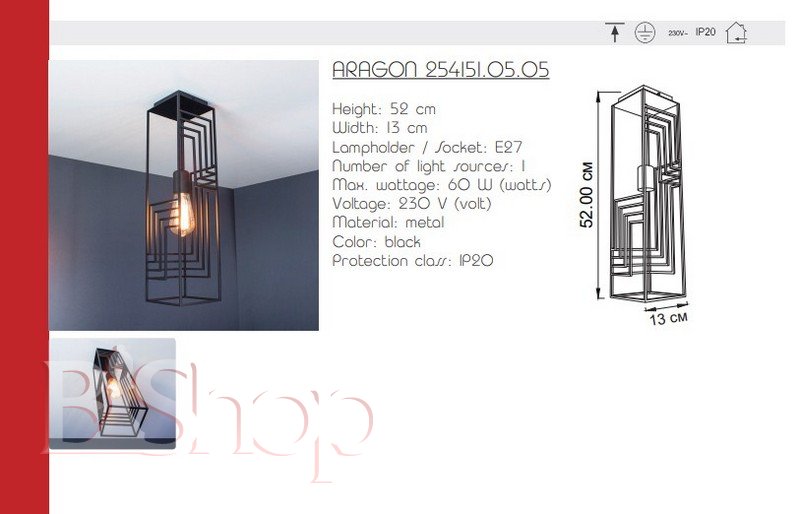 Количество ламп: 1. Тип цоколя: E27. Высота (см): 52. Ширина (см): 13. Мощность лампы (Вт): 60.