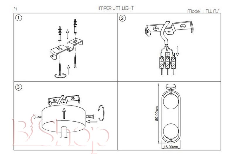 Количество ламп: 2. Тип цоколя: E14. Высота (см): 50. Ширина (см): 16. Мощность лампы (Вт): 40.