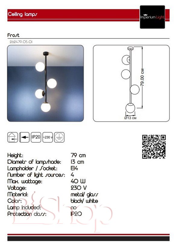 Количество ламп: 4. Тип цоколя: E14. Высота (см): 79. Мощность лампы (Вт): 40.
