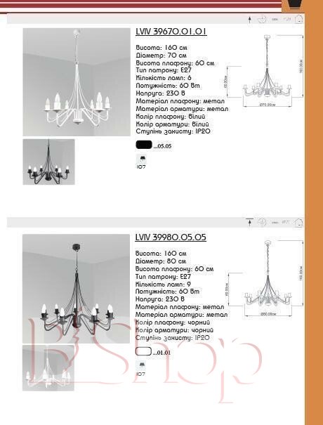 Количество ламп: 6. Тип цоколя: E27. Высота (см): 160. Мощность лампы (Вт): 60. Диаметр (см): 70.