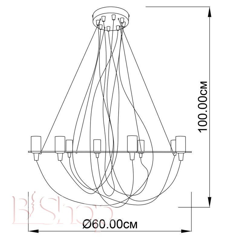 Количество ламп: 8. Тип цоколя: E14. Высота (см): 100. Мощность лампы (Вт): 60. Диаметр (см): 60.