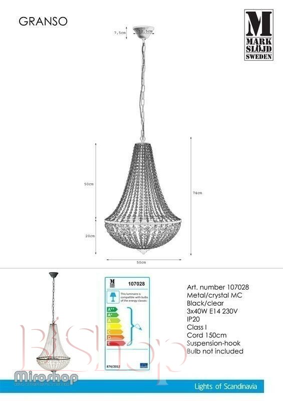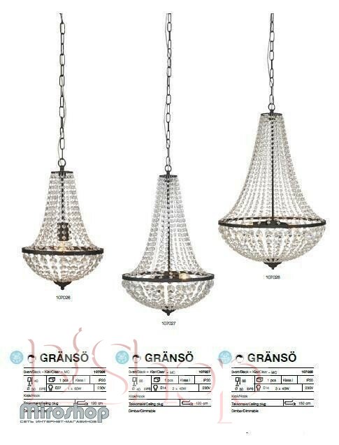 Количество ламп: 3. Тип цоколя: E14. Высота (см): 150. Мощность лампы (Вт): 40. Диаметр (см): 50.