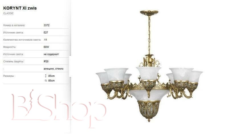 Количество ламп: 11. Тип цоколя: E27. Высота (см): 85. Мощность лампы (Вт): 60. Диаметр (см): 85.