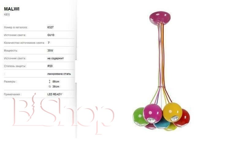 Количество ламп: 7. Тип цоколя: GU10. Высота (см): 86. Мощность лампы (Вт): 35. Диаметр (см): 36.