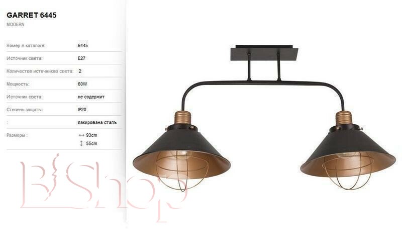 Количество ламп: 2. Тип цоколя: E27. Высота (см): 55. Ширина (см): 93. Мощность лампы (Вт): 60.
