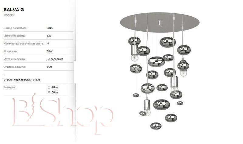 Количество ламп: 4. Тип цоколя: E27. Высота (см): 70. Мощность лампы (Вт): 60. Диаметр (см): 50.