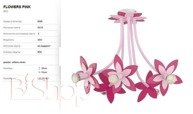- Цвет плафонов и подвесок: Розовый