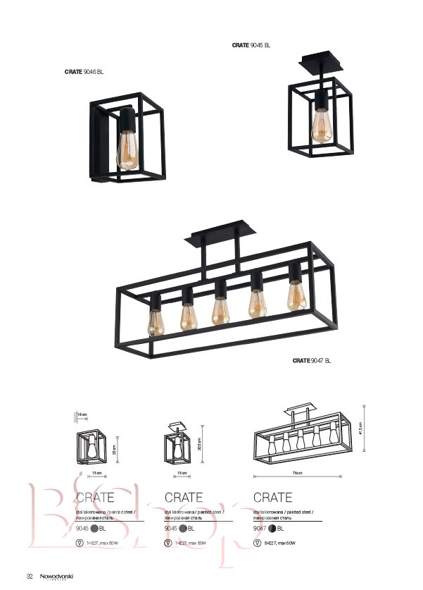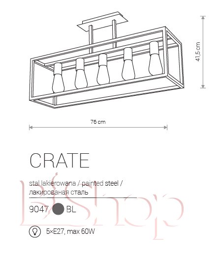 Количество ламп: 5. Тип цоколя: E27. Высота (см): 41.5. Мощность лампы (Вт): 60. Длина (см): 76.