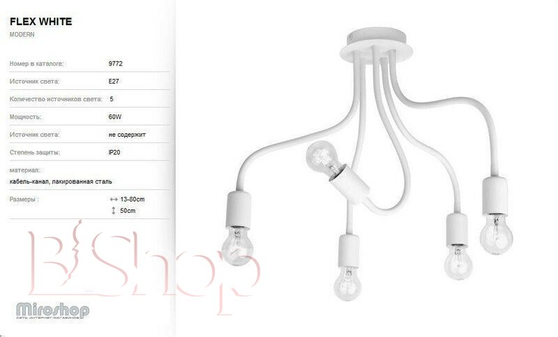 Количество ламп: 5. Тип цоколя: E27. Высота (см): 50. Мощность лампы (Вт): 60. Диаметр (см): 80.