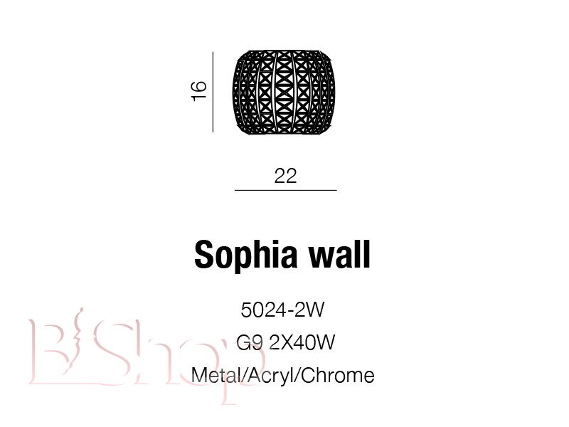 Количество ламп: 2. Тип цоколя: G9. Высота (см): 16. Ширина (см): 22. Мощность лампы (Вт): 40.