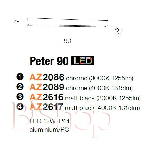 Настенный светильник Azzardo AZ2086 Peter 90 3000 (chrome) (LIN-3001-90-CH) (16005)