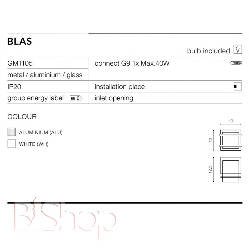Количество ламп: 1. Тип цоколя: G9. Высота (см): 10. Ширина (см): 10. Глубина (см): 11. Мощность лампы (Вт): 40.