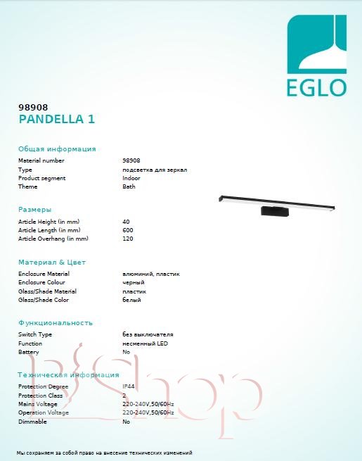 Количество ламп: 1. Тип цоколя: LED. Высота (см): 4. Ширина (см): 60. Глубина (см): 12. Мощность лампы (Вт): 7.4.