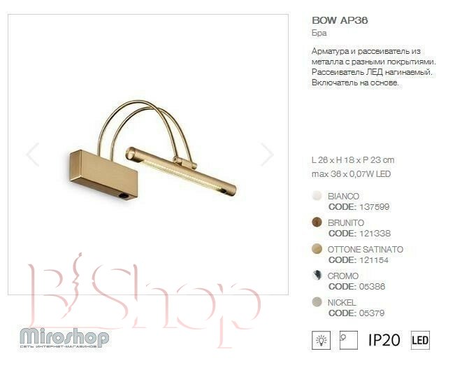 Настенный светильник Ideal Lux BOW AP36 OTTONE SATINATO (121154) (93973)