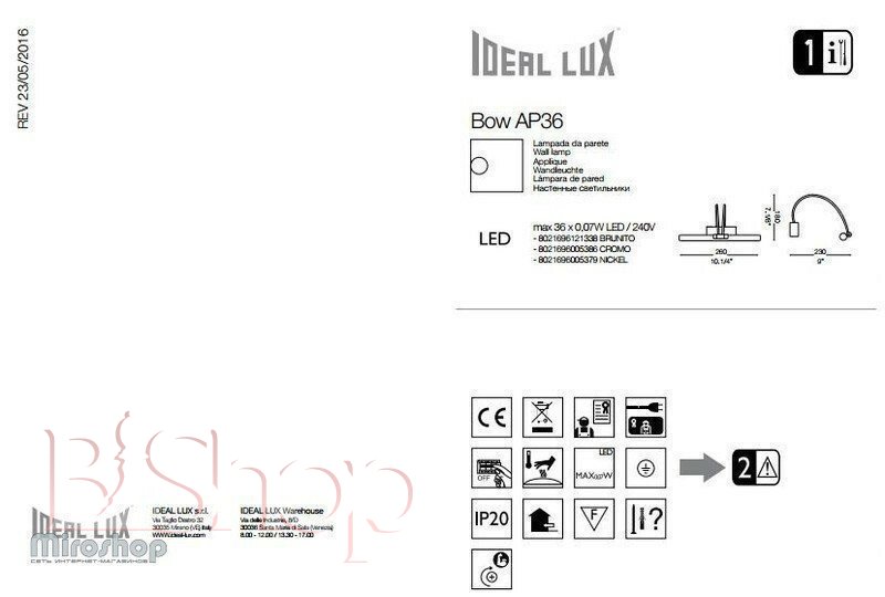 Ideal Lux (Италия)MS560980R- Мощность лампы (Вт): 0.07 Вт