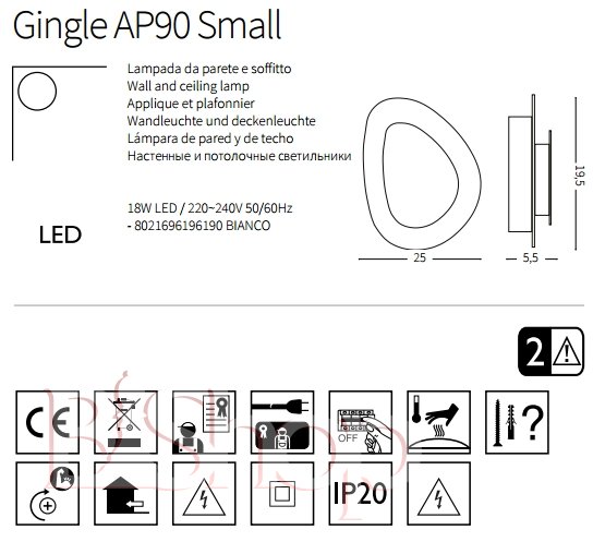 Настенный светильник Ideal Lux GINGLE AP90 SMALL (196190) (23144)