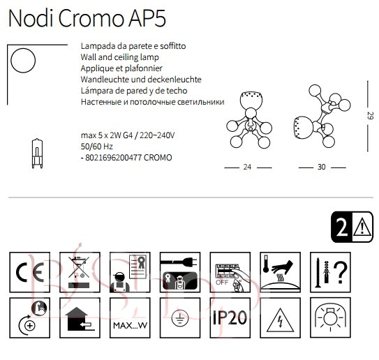 Настенный светильник Ideal Lux NODI CROMO AP5 (200477) (22959)